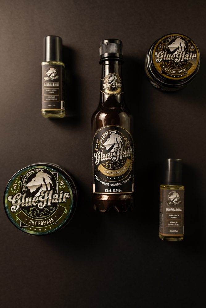Linha completa para cabelo e barba, do pré ao pós-barba a Glue Hair cuida da saúde dos fios dos seus clientes